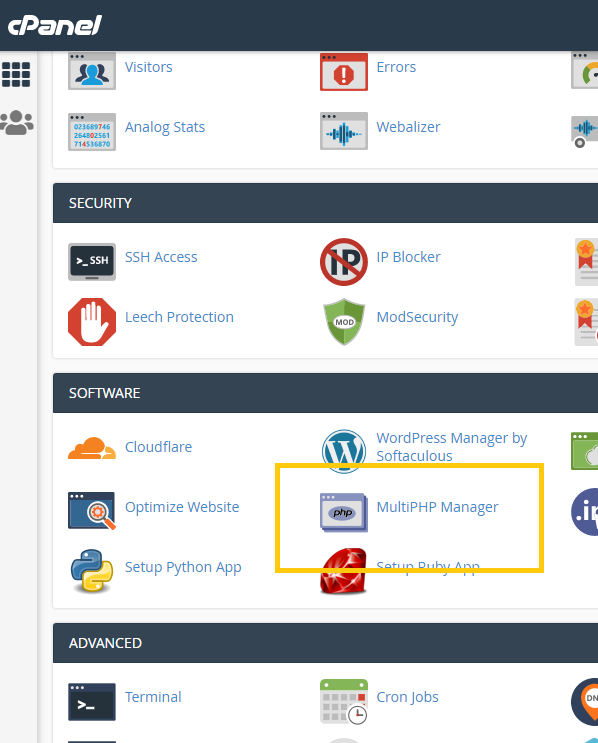 Step 2.  Select "MultiPHP Manager" in the "Software" section.