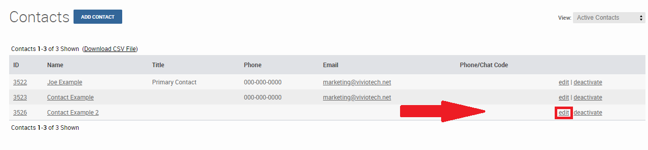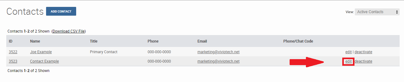 Step 3: Select "Edit" to the right of the contact listing. A new pop-up will open.